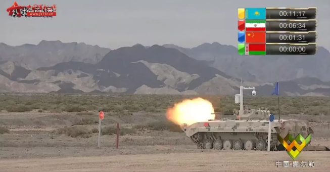 本次比賽,參賽隊需在4.3公里的賽道上通過11個障礙,并在三圈的比賽中分別射擊三種不同目標。中國三個車組在射擊環(huán)節(jié)中彈無虛發(fā),27個目標全部命中,是本日比賽射擊環(huán)節(jié)唯一全中的參賽隊。