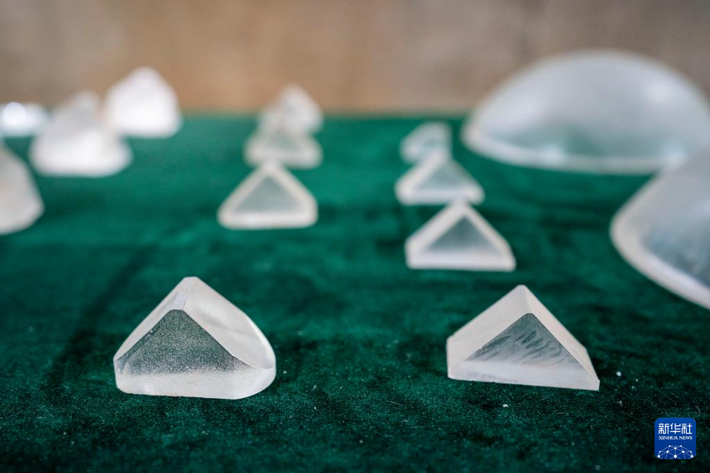 這是5月16日拍攝的中國光學(xué)歷史博物館內(nèi)展出的玻璃元件。