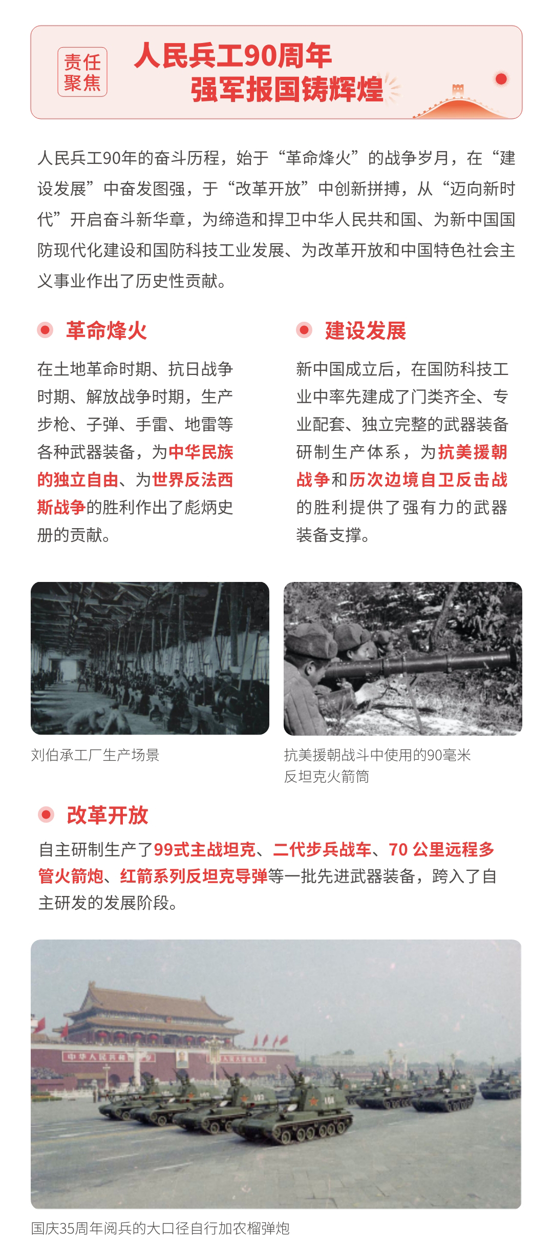 近日,兵器工業(yè)集團(tuán)正式發(fā)布第十三份年度社會(huì)責(zé)任報(bào)告——《中國(guó)兵器工業(yè)集團(tuán)有限公司2021年社會(huì)責(zé)任報(bào)告》,以“用心守護(hù)和平、用力爭(zhēng)創(chuàng)一流、用情溫暖社會(huì)”為主題,從恪守強(qiáng)軍首責(zé)、服務(wù)經(jīng)濟(jì)建設(shè)、共創(chuàng)美好生活三個(gè)維度,向社會(huì)全面披露2021年度履責(zé)實(shí)踐和履責(zé)業(yè)績(jī)?!秷?bào)告》連續(xù)第三年獲得中國(guó)企業(yè)社會(huì)責(zé)任報(bào)告評(píng)級(jí)專家委員會(huì)“五星佳”評(píng)級(jí),兵器工業(yè)集團(tuán)成為軍工行業(yè)唯一連續(xù)11年獲得五星及五星佳最高評(píng)級(jí)的企業(yè)。 一圖解碼兵器工業(yè)的“責(zé)任力量” |